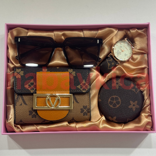 Ovaj predivni set sadrži sunčane naočare, ručni sat, novčanik i ogledalce – savršenu kombinaciju dodataka za svaku modernu ženu.